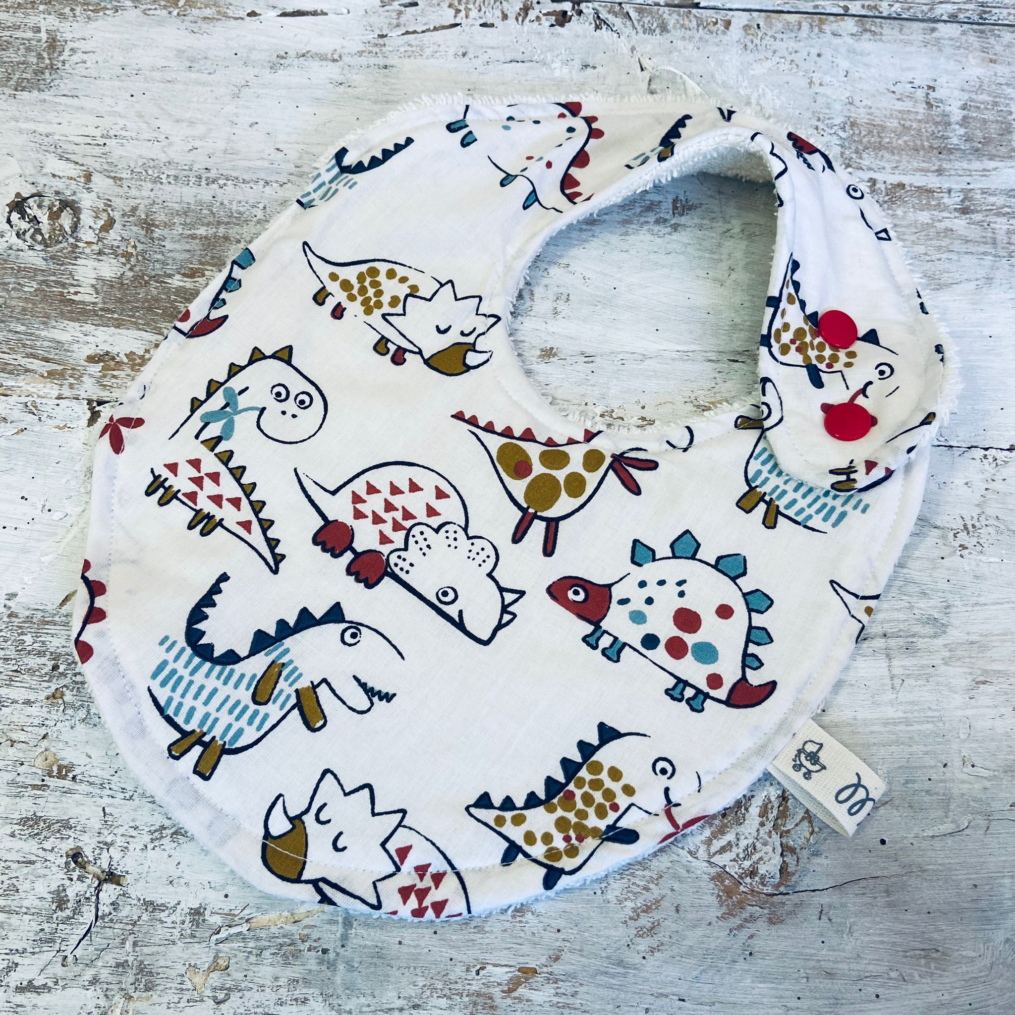 Bavaglino con un lato in morbida spugna e l’altro in 100% cotone