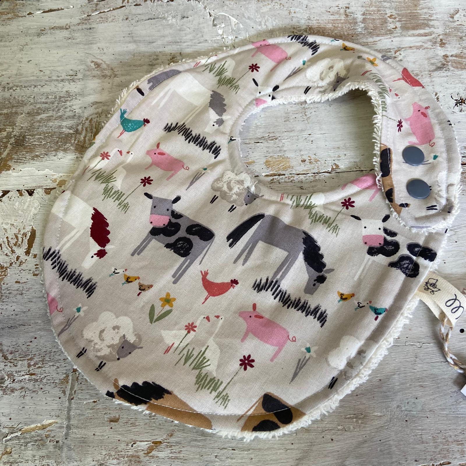 Bavaglino con un lato in morbida spugna e l’altro in 100% cotone