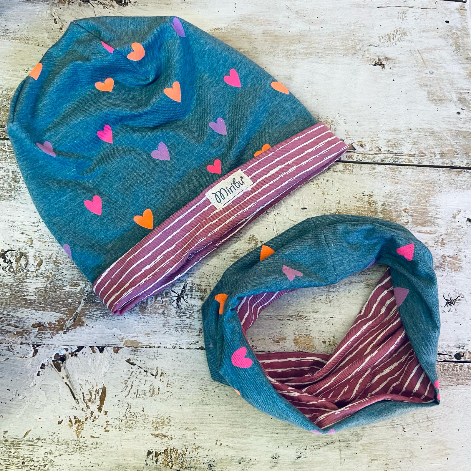 Coordinato cuffia e scaldacollo Cuoricini – Taglia L