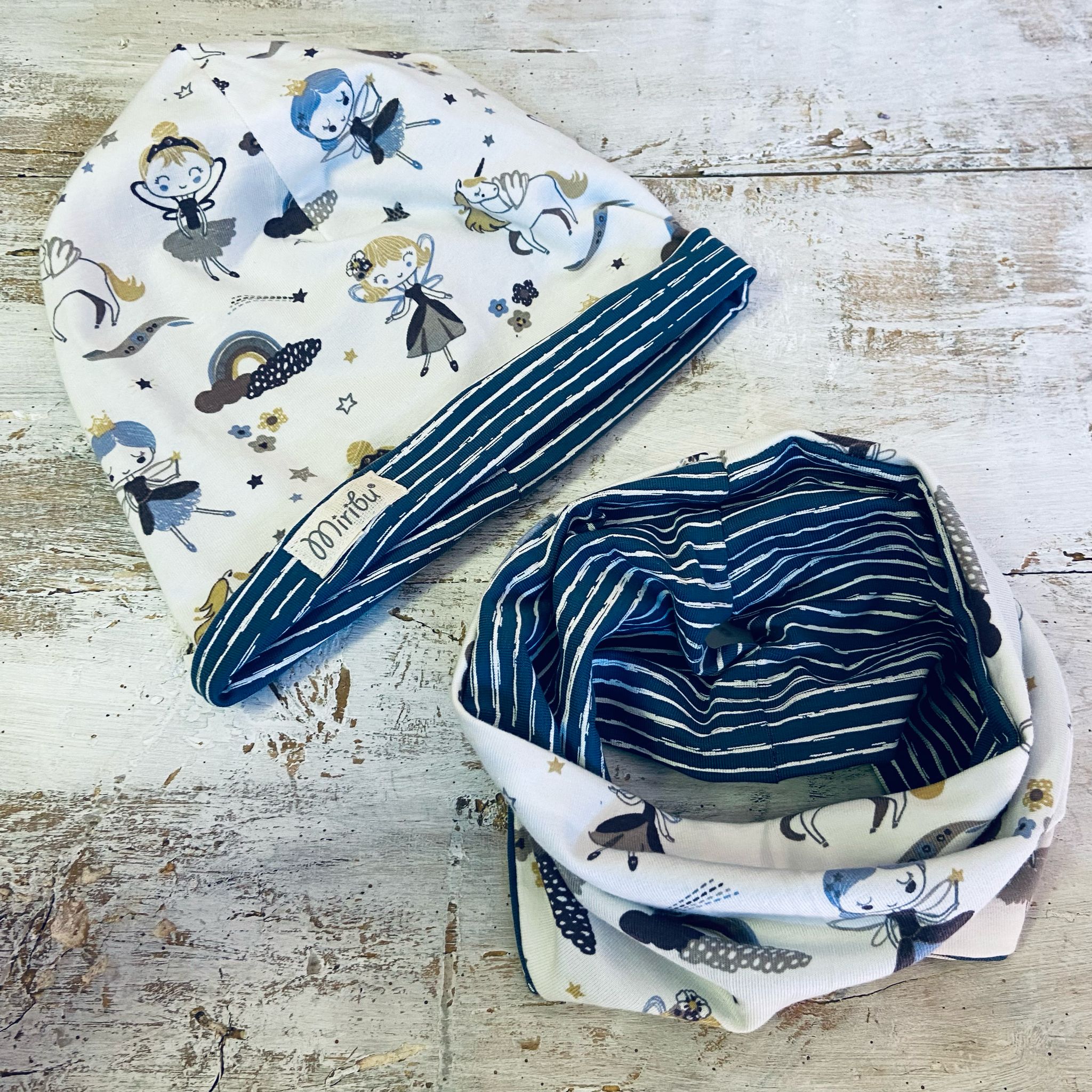 Cuffia e scaldacollo double face in doppio jersey.