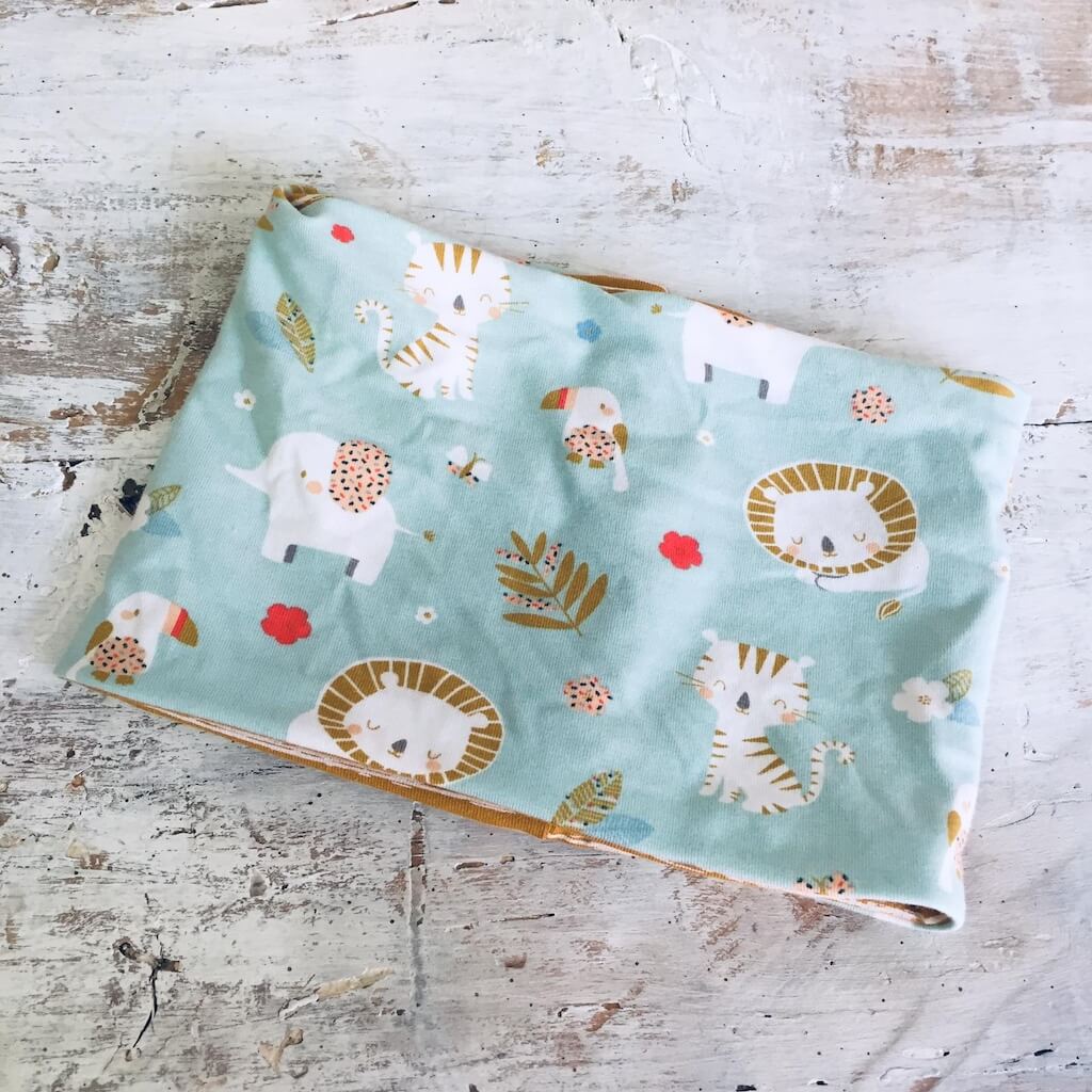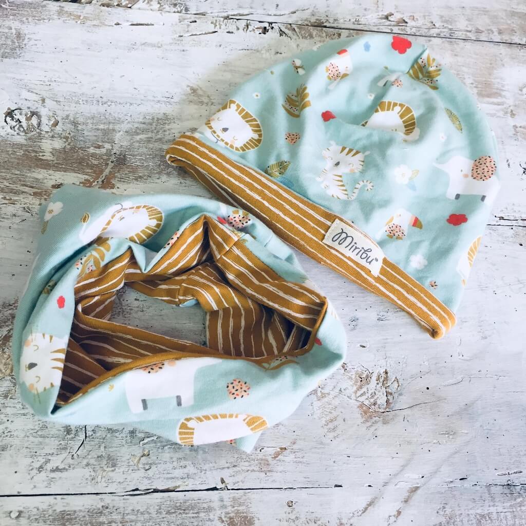 Cuffia e scaldacollo double face in doppio jersey.