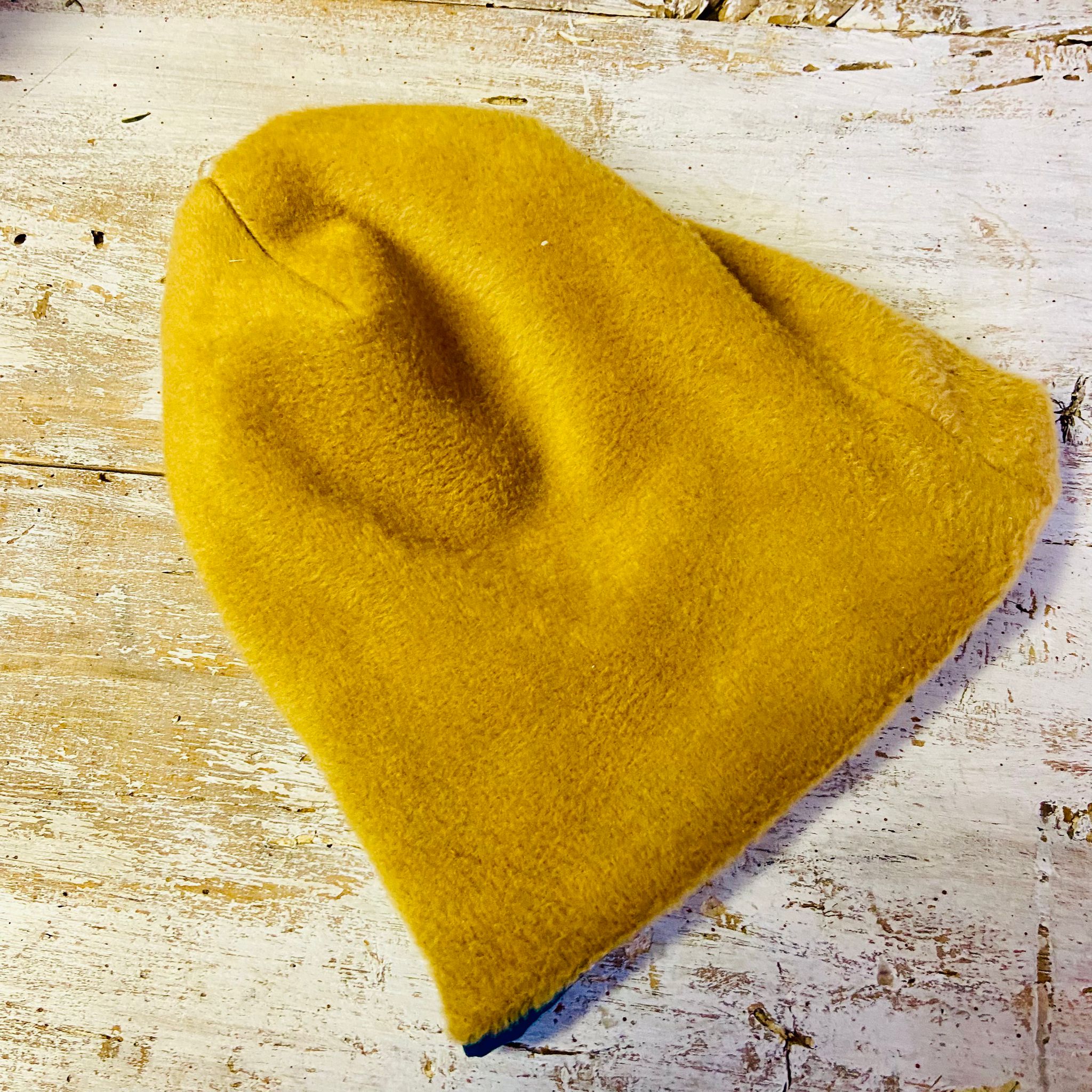 Esterno in Jersey 95% cotone e 5% elastan. Interno composto da 80% cotone e 20% poliestere pile in colore senape.