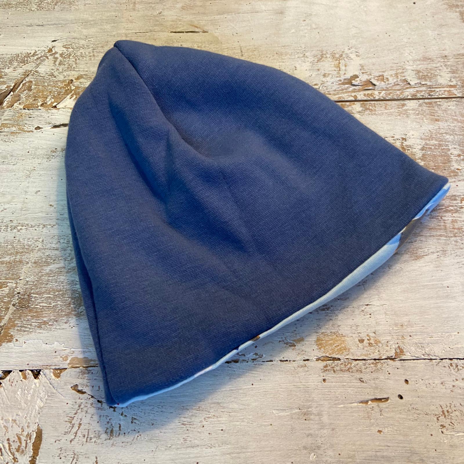 Esterno in Jersey 95% cotone e 5% elastan. Interno felpato composto da 80% cotone e 20% poliestere in colore blu.
