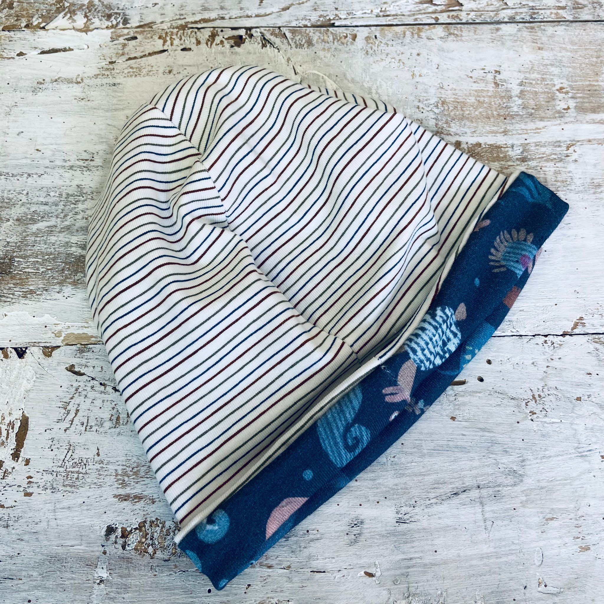 Cuffia double face in doppio Jersey 5% elastan, 95% cotone.