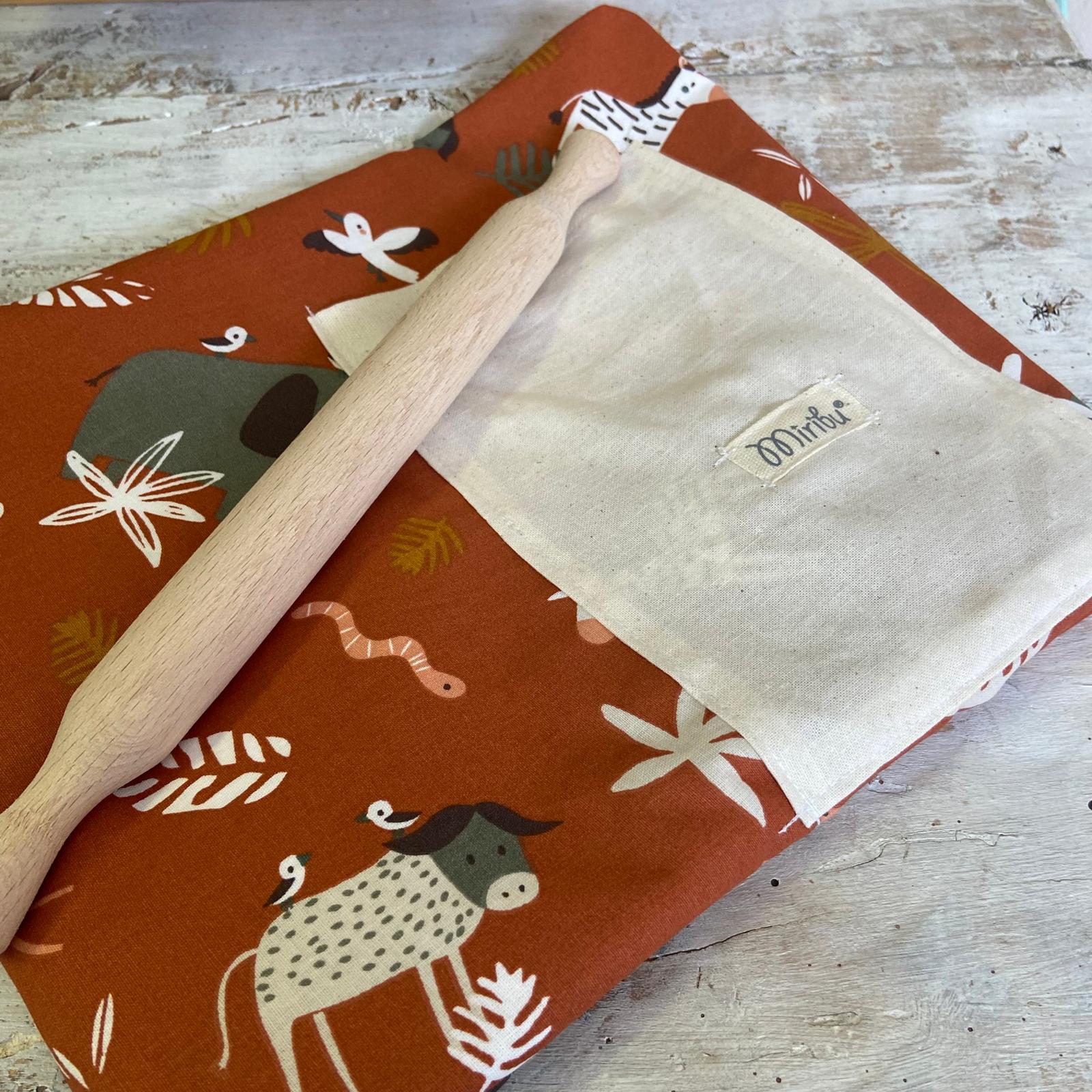 Il grembiulino da cucina è regolabile al collo con strappo in velcro e in vita con nastro in cotone.