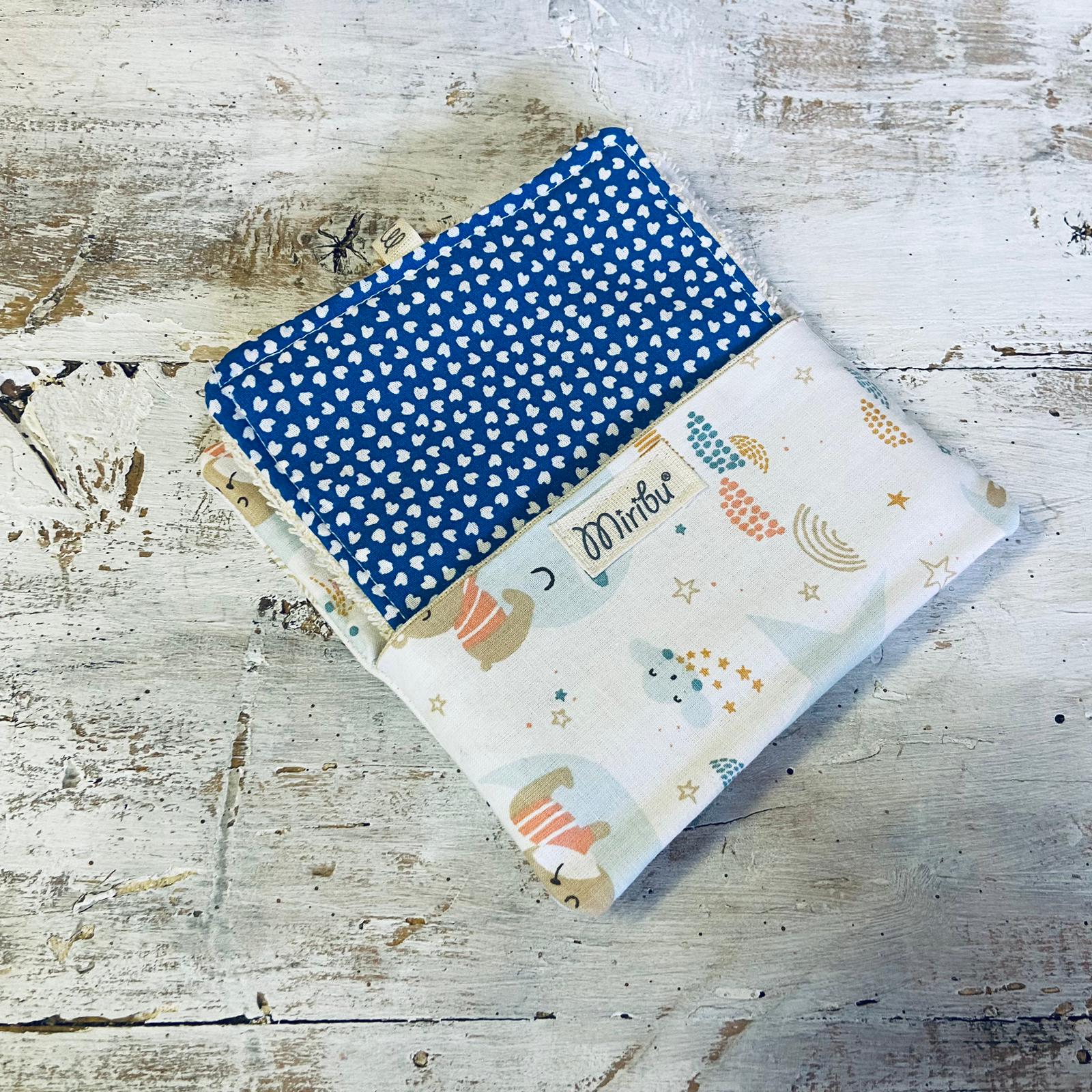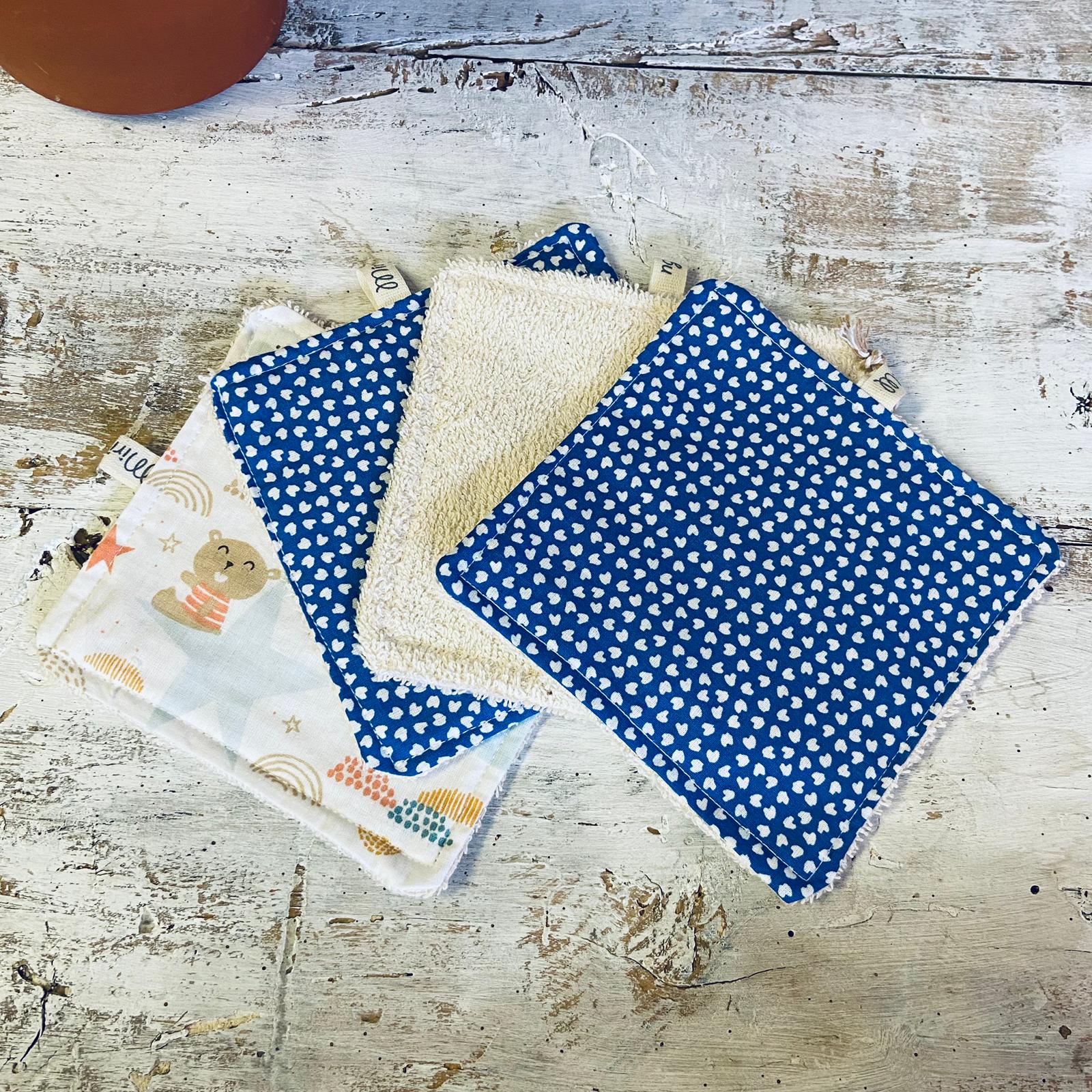 L’articolo è composto da una pochette in cotone contenente 4 Quadrotti assortiti, fronte cotone, retro in morbida spugna.