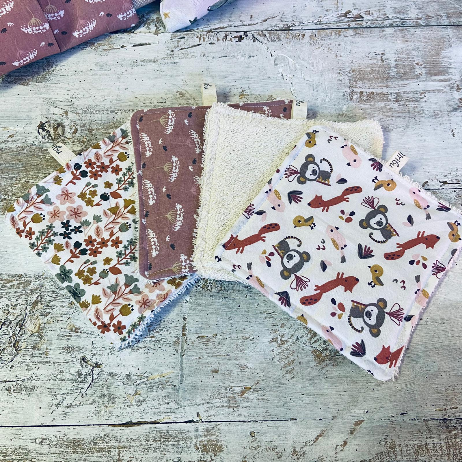 L’articolo è composto da una pochette in cotone contenente 4 Quadrotti assortiti, fronte cotone, retro in morbida spugna.