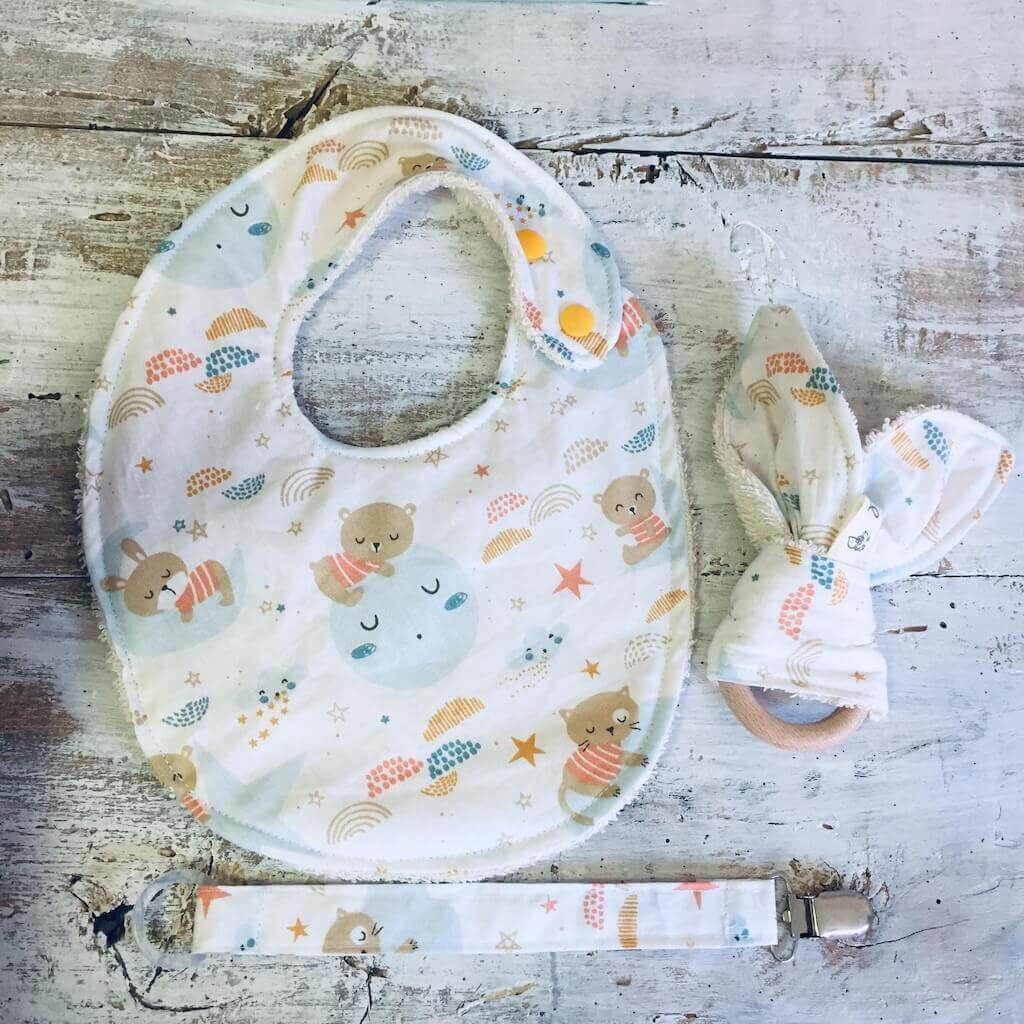 Il tris Bebè è una confezione regalo pensata per le nuove nascite, è composta da tre articoli in coordinato.